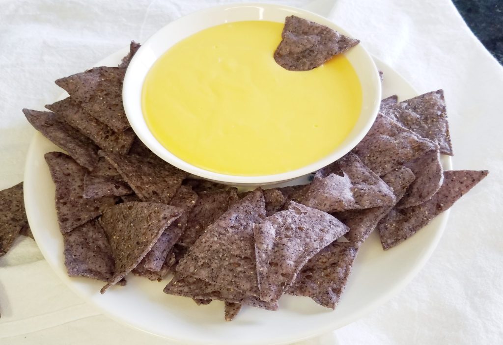 This recipe is dedicated to my brother Sam, who eats tortilla chips with queso pretty much every game day. You can turn your favorite tailgating snack into a blue and yellow-themed treat for World Down Syndrome Day by using blue corn tortilla chips.